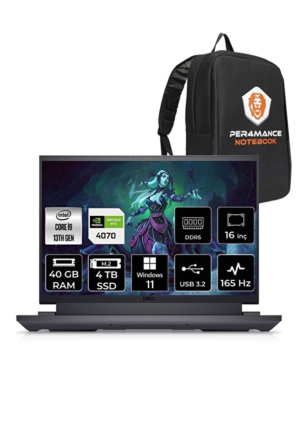 Dell G16 7630 i9 13900HX 8GB 4TB SSD RTX4070/8GB 165HZ 16” QHD+ W11P G76302401022U & PER4 ÇANTA