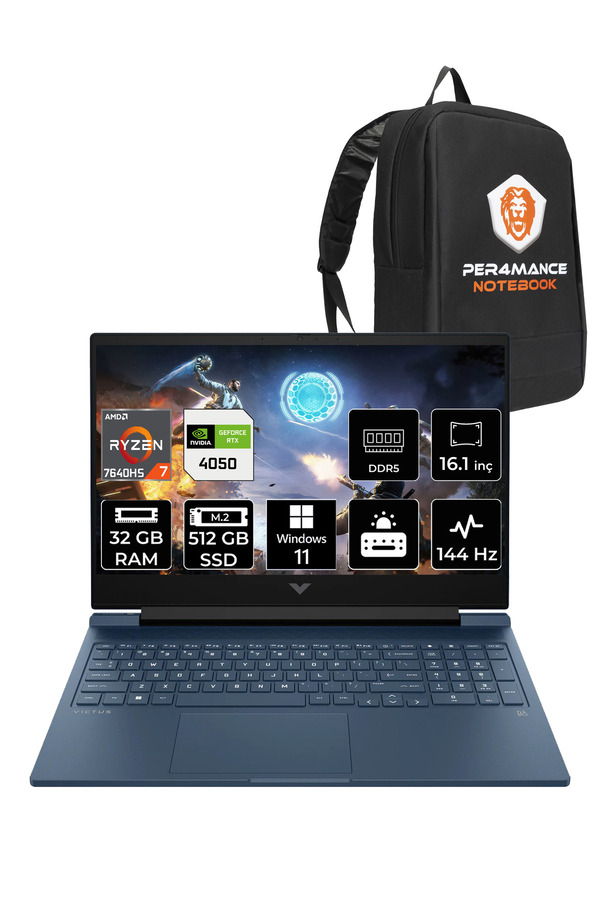 HP Victus 15 i5 13500H 12GB 256GB SSD RTX4050/6GB 144Hz 15.6” FHD W11P Gaming Laptop & PER4 ÇANTA
