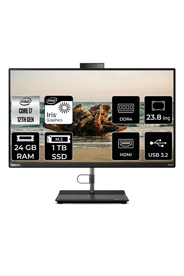 LENOVO THİNKCENTRE NEO 30A i7 1260P 48GB RAM 2TB SSD 23.8″ FHD FDOS ALL IN ONE PC 12B0008JTX